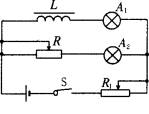 (3分)演示自感现象的实验电路图如图所示,L是电感线圈,A1、A2是规格相同的灯泡,R的阻值与L的直流电阻阻值相同.当开关S由断开到合上时,观察到的自感现象是________,最后达到同样亮。