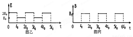(2)在第(1)问的条件下,在极板间再加上空间分布均匀、大小随时间周期性变化、方向垂直纸面向外的磁场,变化规律如图丙所示,已知磁感应强度
