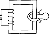 如图所示,两个互相连接的金属环,粗环的电阻等于细环电阻的1/2,将细环套在变压器铁芯上时,A、B两点间电压为0.6 V;若将粗环套在变压器铁芯上时,A、B两点间的电压是(外电路的电阻R相同)