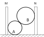 (10分) 如图所示,M、N为固定在光滑水平地面上的两块光滑竖直挡板,两板间叠放着A、B两个等长的光滑圆柱体. 已知圆柱体A的底面半径为2m, 圆柱体B的底面半径为3m,M、N两板间的距离为8m. 圆柱体A对M挡板的压力为12N, 圆柱体A的质量为1kg. 求:(1)圆柱体A对圆柱体B的支持力的方向与水平方向的夹角为多少度?(2)圆柱体A对地面的压力为多少?(g取10m/s2)![]()