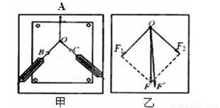 (2)操作中实验情况如图甲所示,其中A为固定橡皮筋的图钉,O为橡皮筋与细绳的结点,OB和OC为细绳。图乙是在白纸上根据实验结果画出的图。则该图的F与F′两力中,方向一定沿AO方向的是______________。