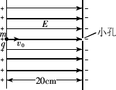 一个质子以初速度v0=5×106 m/s水平射入一个由两块带电的平行金属板组成的区域,如图所示.两板距离为20 cm,设金属板之间电场是匀强电场,电场强度为E=3×105 N/C,质子质量m=1.67×10-27 kg,电量q=1.60×10-19 C.求质子由板上小孔射出时的速度大小.