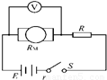 如图所示,一直流电动机(内阻R=2Ω)与一灯泡L(6V,6W)接在电路中,电源电动势ε=8V,内电阻r=1Ω。合上电键后灯泡恰好正常发光。