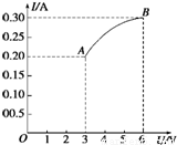 精英家教网一小灯泡的伏安特性曲线如图所示,图中只画出了AB段,由图可知,当灯泡两端电压由3V变为6V时,则灯泡的灯丝电阻改变了