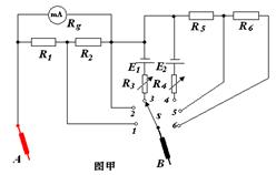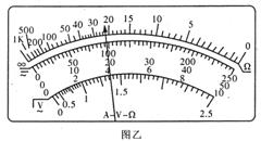 100Ω的表头,设计了一个多量程多用电表。其内部结构示意图如图甲,表盘如图乙。电流表的量程分别为10mA和250mA,电压表的量程分别为10V和250V,测电阻档分别为×10Ω和×100Ω。则: