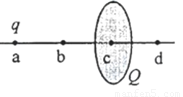 如图,一半径为R的圆盘上均匀分布着电荷量为Q的电荷,在垂直于圆盘且过圆心c的轴线上有a、 b、d三个点,a和b、b和c、 c和d间的距离均为R,在a点处有一电荷量为q (q>0)的固定点电荷.已知b点处的场强为零,则d点处场强的大小为( )(k为静电力常量)