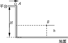如图所示,平台离水平地面的高度为H=5 m,一质量为m=1 kg的小球从平台上A点以某一速度水平抛出,测得其运动到B点时的速度为vB=10 m/s.已知B点离地面的高度为h=1.8 m,取重力加速度g=10 m/s2,以水平地面为零势能面.问: