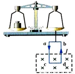 如图为“电流天平”示意图,它可用于测定磁感应强度B.在天平的右端挂有一矩形线圈,设其匝数为5匝,底边cd长20cm,放在待测匀强磁场中,使线圈平面与磁场垂直.设磁场方向垂直于纸面向里,当线圈中通入如图方向的电流I=100mA时,两盘均不放砝码,天平平衡.若保持电流大小不变,使电流方向反向,则要在天平左盘加质量m=8.2g砝码,天平才能平衡.则磁感应强度B的大小为多少(g取10m/s2)?