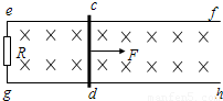如图所示,ef、gh为水平放置的足够长的平行光滑导轨,导轨间距为L=1m,导轨左端连接一个R=2Ω的电阻,将一根质量为m=0.2kg的金属棒cd垂直放置在导轨上,且与导轨接触良好,导轨与金属棒的电阻均不计,整个装置放在磁感应强度为B=2T的匀强磁场中,磁场方向垂直于导轨平面向下.现对金属棒施加一水平向右的拉力F,使棒从静止开始向右运动.