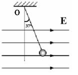 用30cm的细线将质量为m=4×10-3㎏的带电小球P悬挂在O点下,当空中有方向为水平向右,大小为E=1×104N/C的匀强电场时,小球偏转37°后处在静止状态。