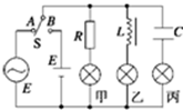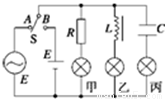 如图所示,三个灯泡是相同的,而且耐压足够高,交、直流两电源的内阻忽略,电动势相等,当S接a时三个灯泡的亮度相同,那么S接b时 ( ).![]()