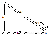 如图所示,均匀长斜板AB可绕过O点的水平轴在竖直平面内自由转动,已知AB板的质量为M=2kg,长为L=150cm,AO=60cm,A点离水平地面h=90cm,B端与地接触,在B端上的物体质量m=1kg,它与斜面间的动摩擦因数μ=0.25,当物体以初速度v=4m/s,沿板向上运动,问: