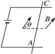 如图所示,通电导体棒AC静止于水平导轨上,棒的质量为m长为L,通过的电流强度为I,匀强磁场的磁感强度B的方向与导轨平面成θ角,求导轨受到AC棒的压力和摩擦力各为多大?![]()