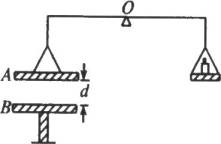 如图所示,水平放置面积相同的两金属板A、B。A板挂在等臂天平的一端,B板用绝缘支架固定,当天平平衡后,两板间的距离为5cm,若在两板间加400V电压后,在天平右端要增加4g砝码天平才能恢复平衡,可见金属板A所带的电荷量为 。