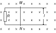 如图所示,一对平行光滑轨道放置在水平面上,两轨道间距l=0.20 m,电阻R=1 W,有一质量为m=1kg的金属棒MN平放在轨道上,与两轨道垂直,金属棒及轨道的电阻可忽略不计,整个装置处于垂直轨道平面向下的匀强磁场中,磁感应强度B=5T,现用拉力F平行轨道方向拉金属棒,使棒做初速为零的匀加速直线运动,加速度a=1m/s2,试求: