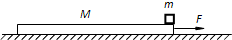 如图所示,水平地面上一个质量M="4.0" kg、长度L="2.0" m的木板,在F="8.0" N的水平拉力作用下,以v0="2.0" m/s的速度向右做匀速直线运动.某时刻将质量m="l.0" kg的物块(物块可视为质点)轻放在木板最右端。![]()