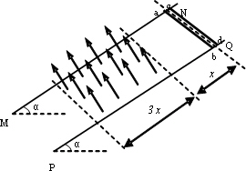 如图所示,两根足够长的平行光滑金属导轨MN、PQ与水平面的夹角为α=30°,导轨电阻不计,导轨处在垂直导轨平面斜向上的有界匀强磁场中.两根电阻都为R=2W 、质量都为m=0.2 kg的完全相同的细金属棒ab和cd垂直导轨并排靠紧的放置在导轨上,与磁场上边界距离为x=1.6 m,有界匀强磁场宽度为3x=4.8 m.先将金属棒ab由静止释放,金属棒ab刚进入磁场就恰好做匀速运动,此时立即由静止释放金属棒cd,金属棒cd在出磁场前已做匀速运动.两金属棒在下滑过程中与导轨接触始终良好(取重力加速度g=10 m/s2).求: