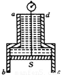 如图所示,一圆柱形容器上部较细,下部的圆筒较粗且足够长.容器的底是一可沿下圆筒无摩擦移动的活塞S,用细绳通过测力计F将活塞提着,容器中盛水,开始时.水面与上圆筒的开口处在同一平面上,在提着活塞的同时使活塞缓慢地下移.在这一过程中,测力计的读数