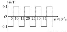 空间存在垂直于纸面方向的均匀磁场,其方向随时间做周期性变化,磁感应强度B随时间t变化的图象如图所示.规定B>0时,磁场的方向穿出纸面.一电荷量q=5π×10-7 C、质量m=5×10-10 kg的带电粒子,位于某点O处,在t=0时刻以初速度v0=π m/s沿某方向开始运动.不计重力的作用,不计磁场的变化可能产生的一切其他影响.则在磁场变化N个(N为整数)周期的时间内带电粒子的平均速度的大小等于( )![]()