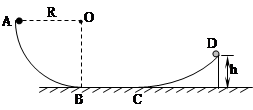 ⑶小球通过光滑的水平面BC滑上固定曲面,恰达最高点D,D到地面的高度为h(已知h<R),则小球在曲面上克服摩擦力所做的功Wf