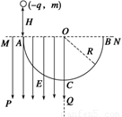 如图所示,MPQO为有界的竖直向下的匀强电场,电场强度为E,ACB为光滑固定的半圆形轨道,轨道半径为R,A、B为圆水平直径的两个端点,AC为
