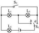 D.S2闭合,S1与b连接,三只灯泡都发光,L3的亮度小于L2的亮度