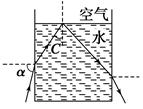 一束单色光由左侧射入盛有清水的薄壁圆柱形玻璃杯,如图为过轴线的截面图,调整入射角α,使光线恰好在水和空气的界面上发生全反射,已知水的折射率为