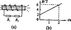 如图所示的螺线管的匝数n=1500,横截面积S=20 cm2,电阻r=1.5 Ω,与螺线管串联的外电阻R1=10 Ω,R2=3.5 Ω.若穿过螺线管的磁场的磁感应强度按图(b)所示的规律变化,计算R1上消耗的电功率.