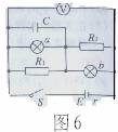 如图6所示的电路中,闭合电键S后,灯a和灯b都正常发光,后来由于某种故障使灯b突然变亮,电压表读数增加,由此推断,这故障可能是( )