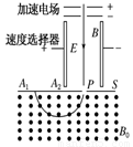 如图是质谱仪的工作原理示意图.带电粒子被加速电场加速后,进入速度选择器.速度选择器内相互正交的匀强磁场和匀强电场的强度分别为B和E.平板S上有可让粒子通过的狭缝P和记录粒子位置的胶片A1A2.平板S下方有磁感应强度为B0的匀强磁场.下列表述正确的是( )