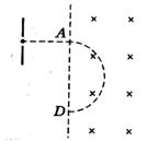 如图所示,质量为为m、电量为q的带电粒子,经电压为U的加速电场加速后,垂直进入磁感应强度为B的匀强磁场后到达图中D点,求A、D间的距离和粒子在磁场中运动的时间。