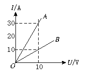 如图所示图线是两个导体A和B的伏安特性曲线,则它们的电阻关系RA∶RB=_____;若两个导体中的电流相等(不为零)时,它们两端的电压之比为UA∶UB=_____;若两个导体两端的电压相等(不为零)时,通过它们的电流之比IA∶IB=_____.