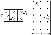 如图所示,带电量为q的粒子(不计重力),匀速直线通过速度选择器(电场强度为E,磁感应强度为B1),又通过宽度为l,磁感应强度为B2的匀强磁场,粒子离开磁场时速度的方向跟入射方向间的偏角为θ.求: