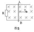 如图5所示,匀强磁场方向垂直纸面向里,导体棒AB在金属框上向右运动;以下说法正确的是:![]()