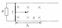 如图所示,两根平行的导轨处于同一水平面内,相距为L.导轨左端用阻值为R的电阻相连,导轨的电阻不计。导轨上跨接一质量为m、电阻为r的金属杆,金属杆与导轨之间的动摩擦因数为μ.整个装置放在竖直向下的匀强磁场中,磁感应强度为B,磁场宽度为S1.现对杆施加一水平向右的恒定拉力F,使它由静止开始进入磁场区域,当金属杆离开磁场时立即将拉力F撤去,金属杆继续运动了一段距离后停止在导轨上。已知重力加速度为g.