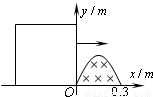 ×(m)(x≤0.3m)所围的空间中存在着垂直纸面向里的匀强磁场,磁感应强度B=0.4T.单匝正方形绝缘金属线框的边长是L=0.4m,线框总电阻R=0.2Ω,它的一边在光滑轨道的x轴上,在拉力F的作用下,线框以v=10m/s的速度水平向右匀速运动.则(  )