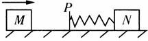 如图所示,质量相等的两个滑块位于光滑水平桌面上.其中弹簧两端分别与静止的滑块N和挡板P相连接,弹簧与挡板的质量均不计;滑块M以初速度v0向右运动,它与档板P碰撞(不粘连)后开始压缩弹簧,最后,滑块N以速度v0向右运动.在此过程中 ( )![]()