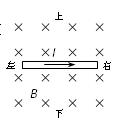 如图所示,有一匀强磁场,磁感应强度B=1T。有一段长L=0.1 m的导线垂直磁场方向放置,当导线中通以I=0.5A的水平向右的电流时,