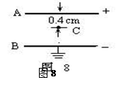 如图所示,两平行金属板间电场是匀强电场,场强大小为1.0×104V/m,A、B两板相距1cm,C点与A板相距0.4cm,若B接地,则A、C间电势差UAC= ,将带电量为-1.0×10-12C的点电荷置于C点,其电势能为 .