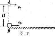 如图10所示,在距地面高为H=45 m处,有一小球A以初速度v0=20 m/s水平抛出,与此同时,在A球的正下方有一物块B也以相同的初速度v0。同方向滑出,物块B与地面间的动摩擦因数为μ=O.5,A、B均可看做质点,空气阻力不计。求: