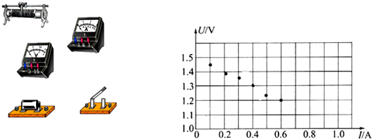 ③实验测得的6组数据已在U-I图中标出,如图所示.请你根据数据点位置完成U-I图线,并由图线求出该电池的电动势E=