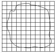 (8分)在“用油膜法估测分子的大小”实验中,将4mL的纯油酸溶液滴入20L无水酒精溶液中充分混合.注射器中1mL的上述混合溶液可分50滴均匀滴出,将其中的1滴滴入盛水的浅盘里,待水面稳定后,将玻璃板放在浅盘上,在玻璃板上描出油膜的轮廓,随后把玻璃板放在坐标纸上,其形状如图所示,坐标纸上正方形小方格的边长为10mm.试解答下列问题,结果均取一位有效数字。