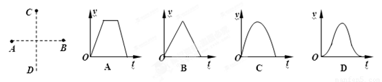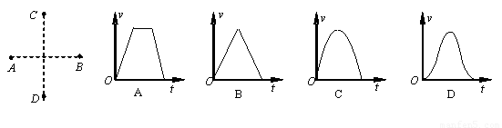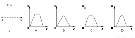 如图所示,两个等量同种点电荷分别固定于光滑绝缘水平面上A、B两点.一个带电粒子由静止释放,仅受电场力作用,沿着AB中垂线从C点运动到D点(C、D是关于AB对称的两点).下列关于粒子运动的v-t图象中可能正确的是(? )
