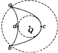 如图所示.在点电荷Q的电场中,已知a、b两点在同一等势面上,c、d两点在同一等势面上,甲、乙两个带电粒子的运动轨迹分别为曲线acb和adb,两粒子经过a点时具有相同的动能,由此判断
