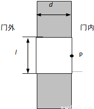(3)如图所示,在一厚度为d的门中安放一长度与门厚度相同的玻璃圆柱体,其直径为l.玻璃圆柱体的折射率为