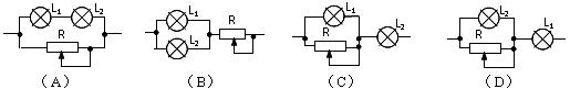 将标有“110V、40W”白炽灯L1和标有“110V、100W”白炽灯L2,与一只滑动变阻器(0~300Ω)组合起来接在220V的线路上,要使L1 、L2都能正常发光而且最省电,应选择的电路图是