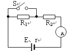 (11分)如图所示,R1=5Ω,R2=9Ω。当开关S断开时,电流表的示数为I=0.2A;当开关S闭合时,电流表的示数为
