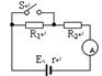(15分)如图所示,R1=5Ω,R2=9Ω。当开关S断开时,电流表的示数为I=0.2A,当开关S闭合时,电流表的示数为