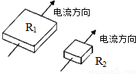 如图所示,R1和R2是材料、厚度均相同、表面为正方形的导体,已知正方形的边长之比为2:1。通过这两导体的电流方向如图所示,则这两个导体电阻之比R1 :R2为( )