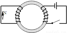 (1)法拉第发现电磁感应现象的实验装置如图所示,软铁环两侧分别绕两个线圈,左侧线圈为闭合回路,在其中一段导线下方附近放置一小磁针,小磁针静止时N极指向北方如图所示,右侧线圈与电池、电键相连.则在闭合电键后,你将看到小磁针______(单选题)